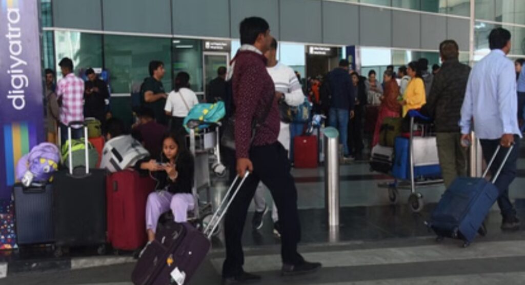 इंडिगो संकट के कारण आईजीआई एयरपोर्ट पर हालात बस अड्डे या रेलवे स्टेशन जैसे हो गए। यात्रियों की लंबी कतारें, महंगे किराए और लगातार उड़ान रद्द होने से एयरपोर्ट पर अफरा-तफरी का माहौल रहा।