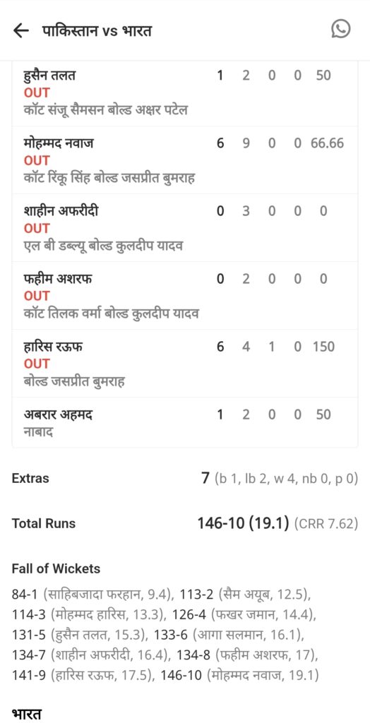 मैच में भारतीय खिलाड़ियों ने शानदार प्रदर्शन करते हुए पाकिस्तान को हर मोर्चे पर पछाड़ा। गेंदबाजों की सटीक लाइन और बल्लेबाज़ों के दमदार शॉट्स ने टीम को जीत की ओर अग्रसर किया।