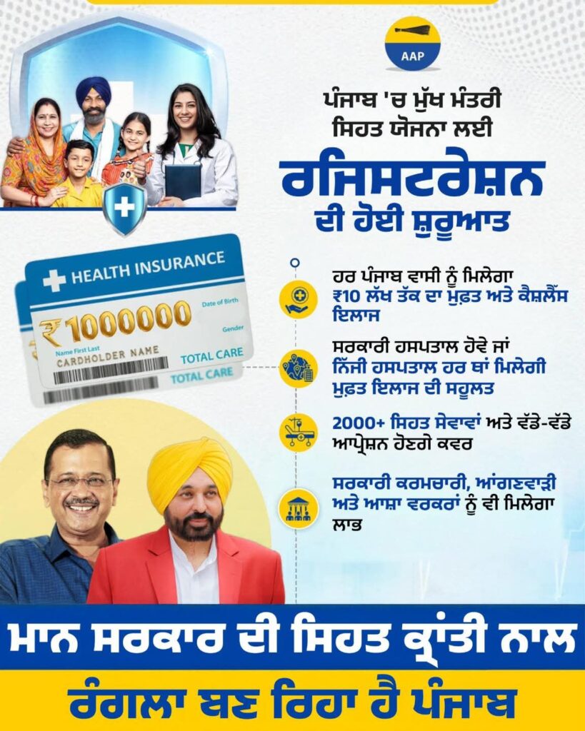 इस योजना के तहत पंजाब के हर परिवार को सालाना ₹10 लाख तक का मुफ्त इलाज मिलेगा, जिससे करीब 65 लाख परिवारों यानी लगभग 3 करोड़ पंजाबियों को सीधा फायदा पहुंचेगा।