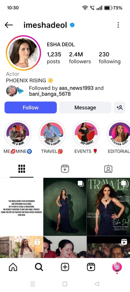 हालांकि, बेटी ईशा देओल ने सोशल मीडिया पर स्पष्ट किया कि “पापा की हालत अब स्थिर है, कृपया अफवाहों पर ध्यान न दें।”