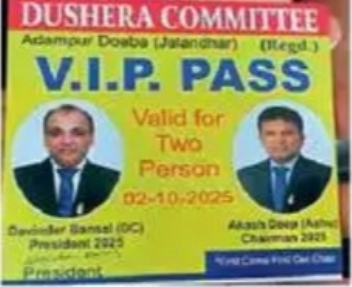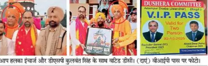 आयोजन में मुख्य मेहमानों को सम्मानित किया गया। सम्मान चिन्ह पर बाकायदा दशहरा कमेटी आदमपुर का नाम और प्रधान के तौर पर दविंदर उर्फ डीसी की फोटो लगी हुई थी।