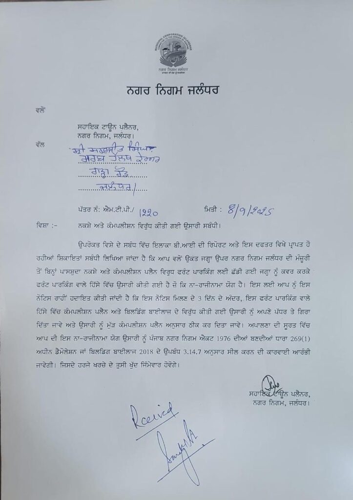 #Jalandhar #MunicipalCorporation #IllegalConstruction #BuildingRules #ParkingViolation #MCJalandhar #Notice #CivicAction #GarhaRoad #ParkingScam #BuildingBylaws #UrbanIssues #CivicAlert