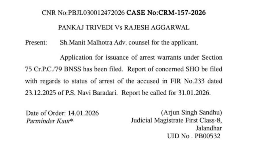 पंकज त्रिवेदी बनाम राजेश अग्रवाल मामले में कोर्ट ने थाना नवी बारादरी से FIR नंबर 233/25 में नामजद आरोपियों की गिरफ्तारी को लेकर विस्तृत स्टेटस रिपोर्ट तलब की है।
