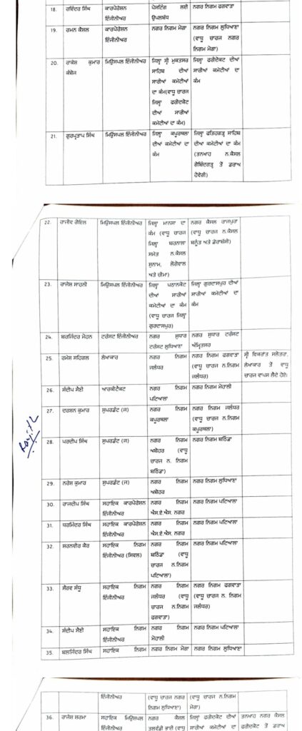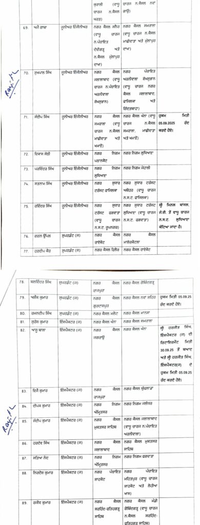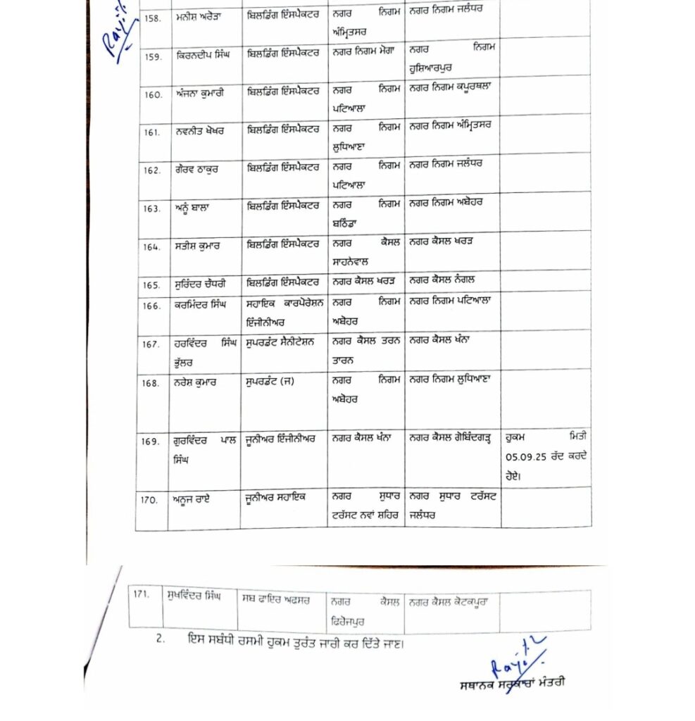 पंजाब हॉटमेल, चंडीगढ़/जालंधर। पंजाब की मान सरकार ने बुधवार को स्थानीय निकाय विभाग में बड़ा प्रशासनिक reshuffle करते हुए 171 अधिकारियों, कर्मचारियों और इंजीनियरों के तबादले कर दिए हैं। यह आदेश तत्काल प्रभाव से लागू किए गए हैं।