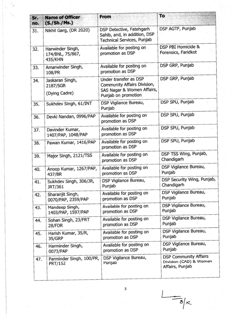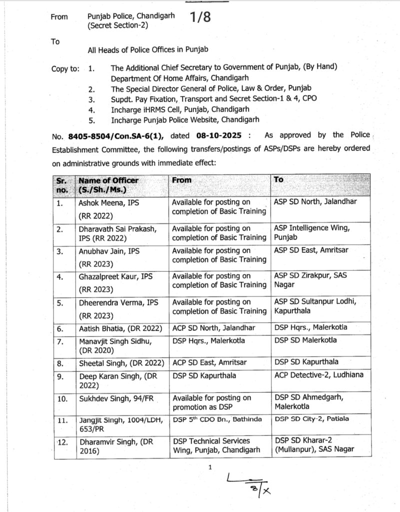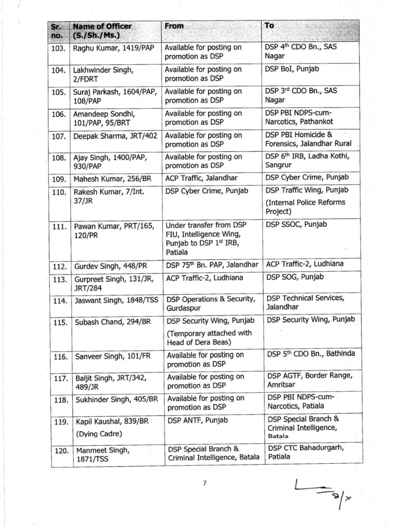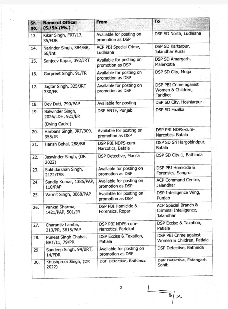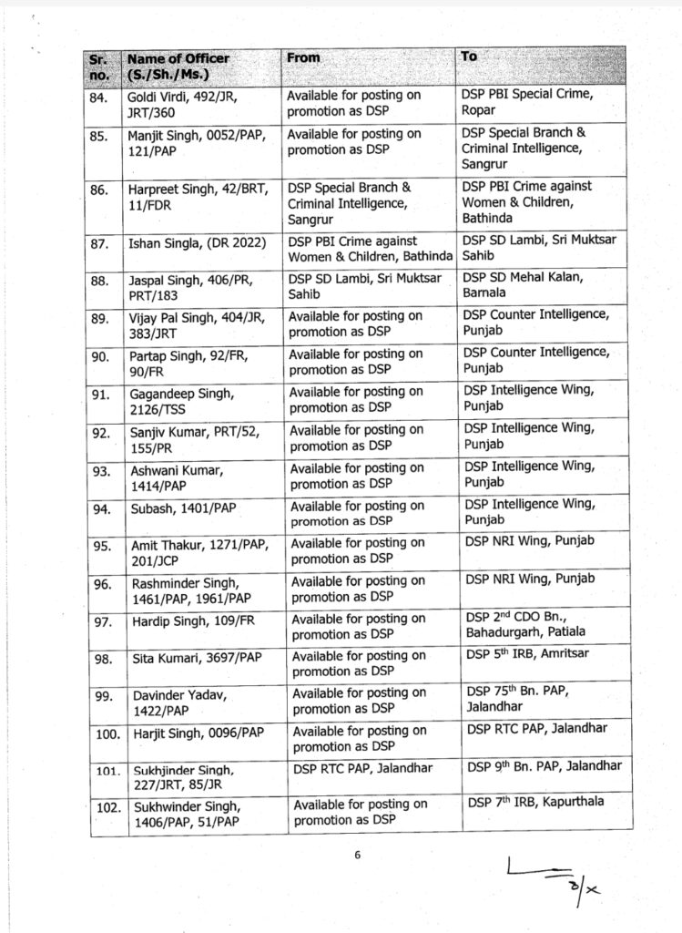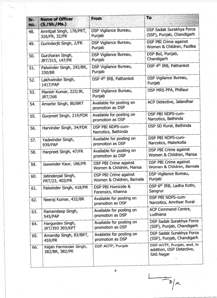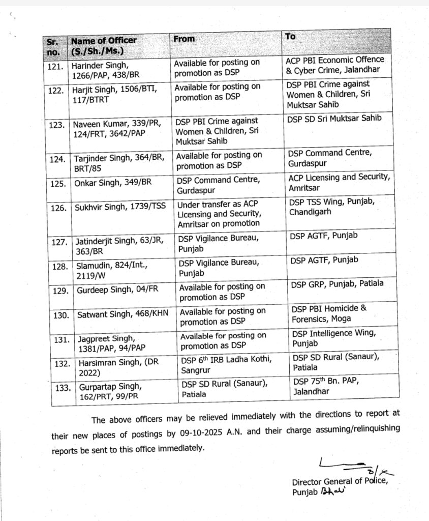 इसके साथ ही पुलिस विभाग में डीएसपी स्तर के कई तबादले भी किए गए हैं, ताकि क्षेत्रीय सुरक्षा और प्रशासनिक कार्यों में तेजी लाई जा सके।