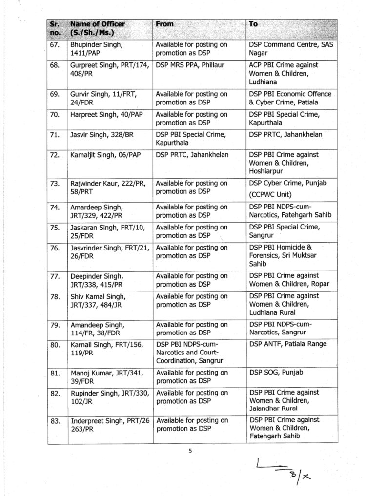 पंजाब सरकार ने 133 Officials के तबादले और नियुक्ति आदेश जारी, पांच आईपीएस अधिकारियों को नई तैनाती