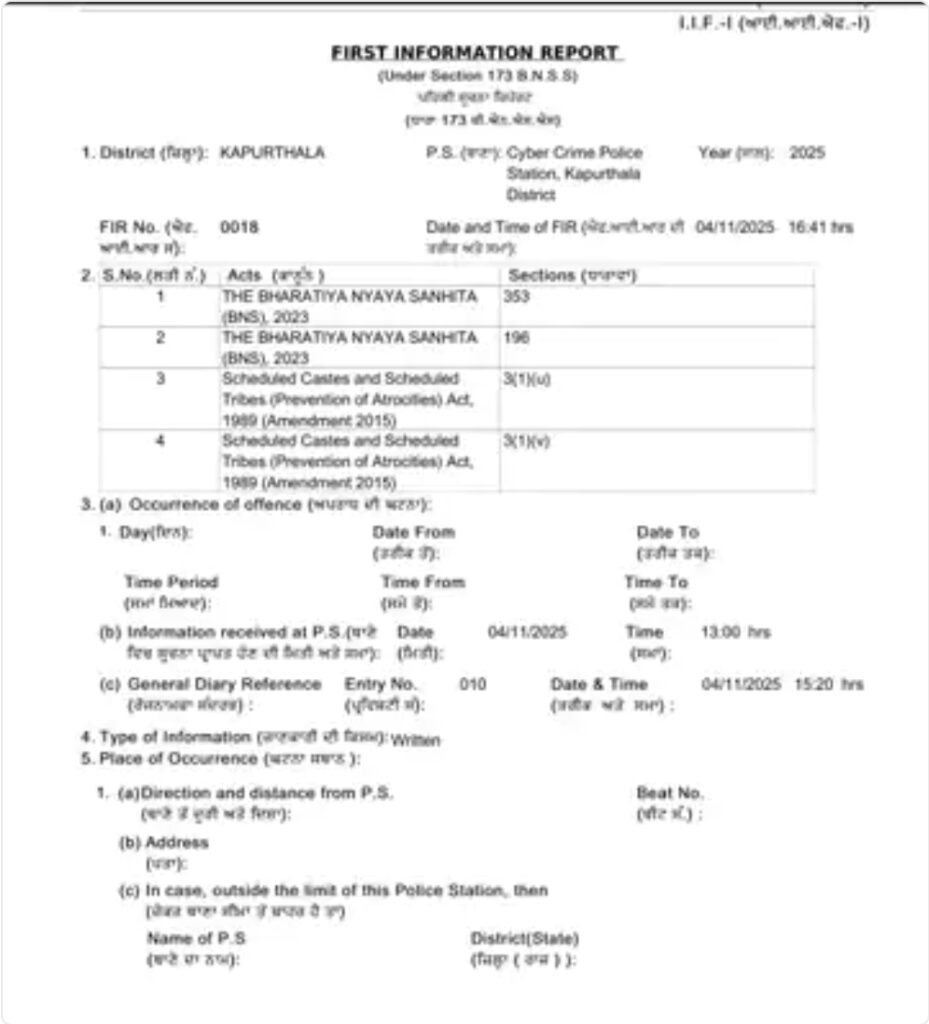 ”इधर, कपूरथला पुलिस ने वड़िंग के खिलाफ SC/ST एक्ट और BNS की धारा 353 व 196 के तहत FIR दर्ज कर ली है। यह शिकायत स्व. बूटा सिंह के बेटे सरबजोत सिंह सिद्धू ने दी थी।