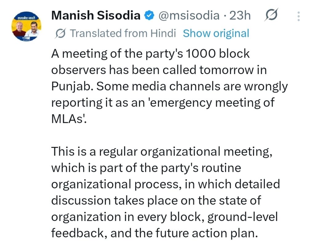 👉 “पंजाब में चुनावी साल है, ऑब्जर्वरों ने हर गली-मोहल्ले से रिपोर्ट तैयार की है, जिसे आज पेश किया जाएगा।”