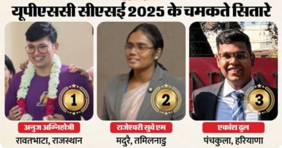 UPSC CSE 2025 का फाइनल रिजल्ट घोषित: अनुज अग्निहोत्री बने देश के टॉपर, 958 अभ्यर्थी चयनित… देखें